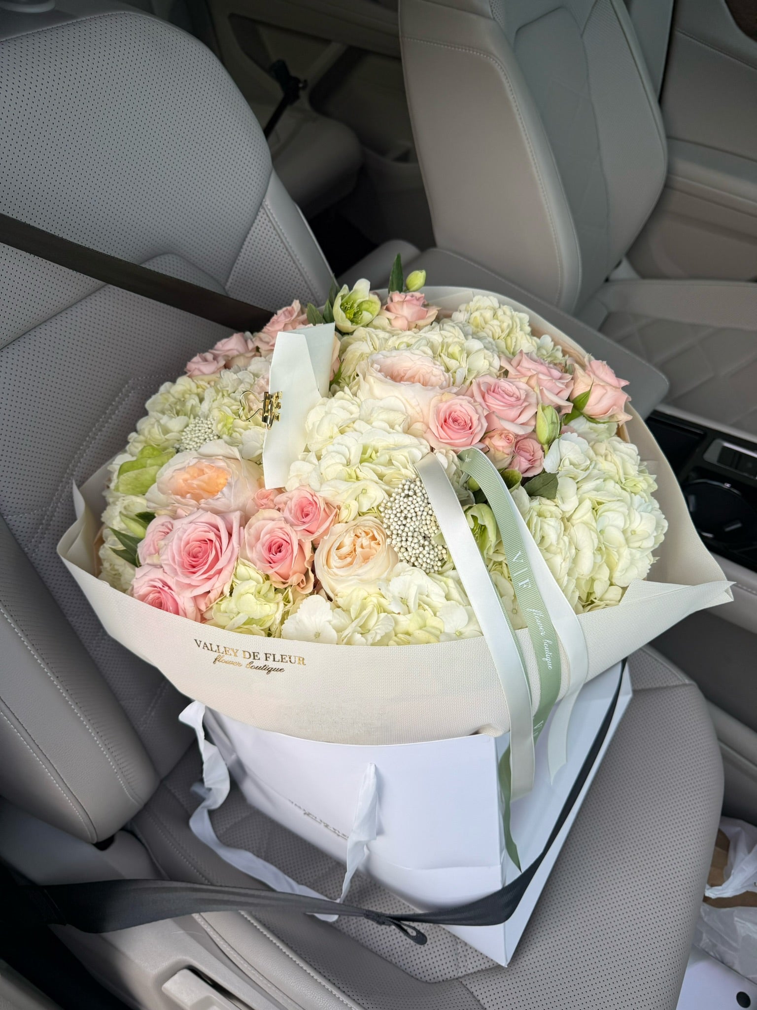 Spring Dreams in Bloom captures the essence of seasonal renewal with its thoughtfully curated arrangement. White hydrangeas provide a luminous foundation, their full, clustered blooms creating substantial visual impact and timeless elegance. Complementing this classic base, delicate pink spray roses add romantic dimension and refined color contrast throughout the composition. This mixed bouquet balances volume with sophistication, making it an ideal choice for celebrations, expressions of gratitude, or simply brightening any space. Each stem is selected for quality and longevity, ensuring your arrangement maintains its beauty for days to come.