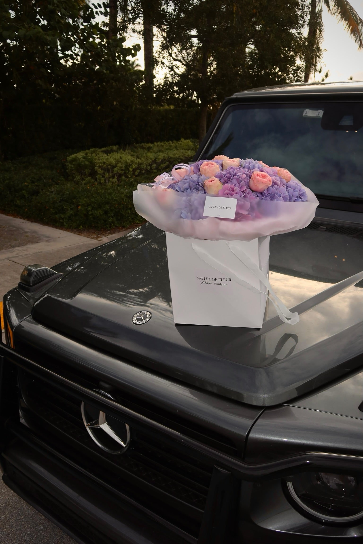 Lavender Blush Harmony combines the soft, romantic appeal of hydrangeas with premium garden roses in delicate blush tones. This sophisticated arrangement showcases the full, layered blooms of garden roses paired with the voluminous texture of hydrangeas, creating depth and visual interest. The cool lavender undertones add complexity while maintaining an elegant, understated aesthetic. Perfect for weddings, anniversaries, or refined home décor, this composition demonstrates masterful color coordination and botanical balance. Each stem is selected for longevity and pristine condition, ensuring your arrangement remains stunning throughout its vase life.