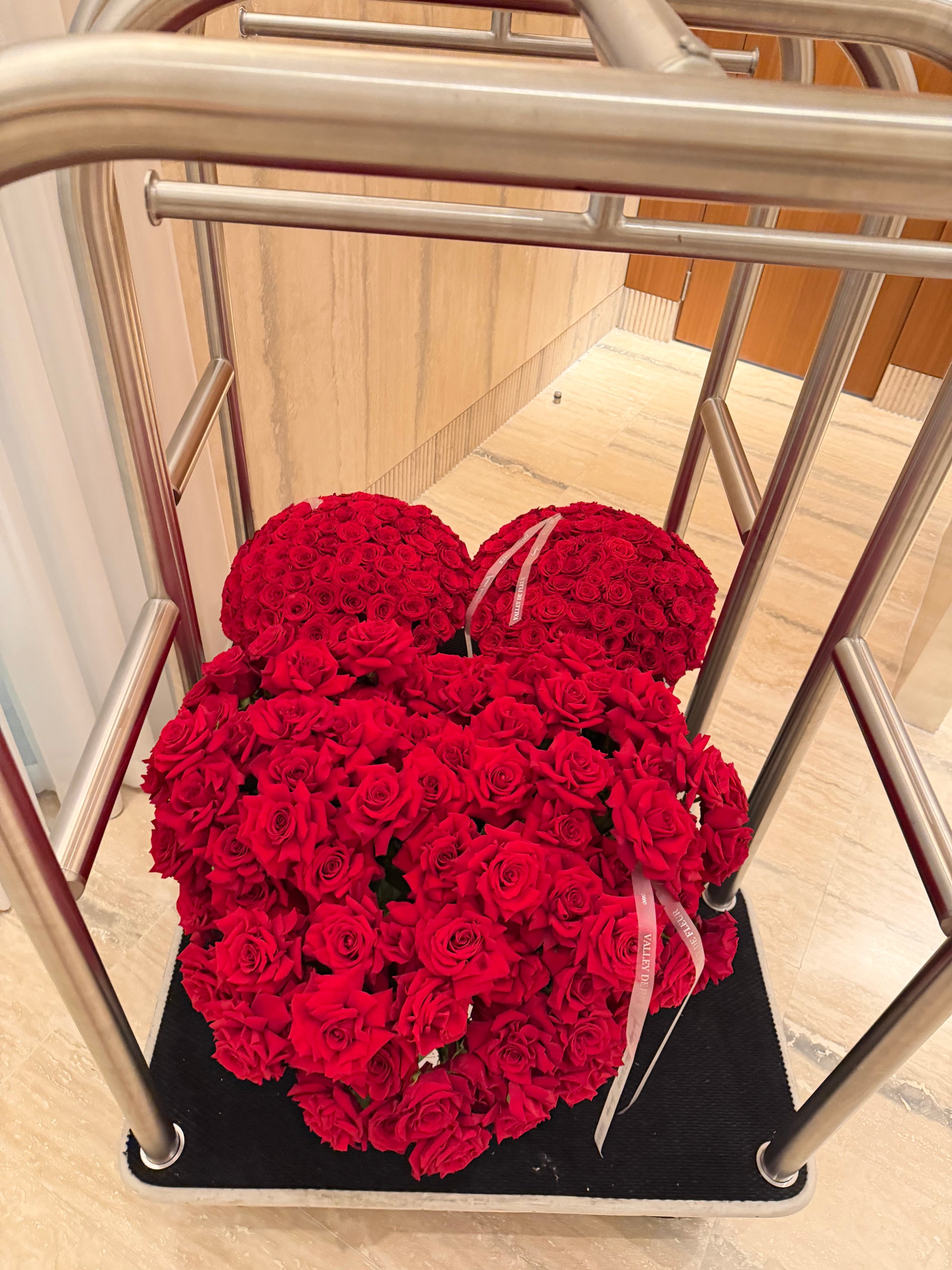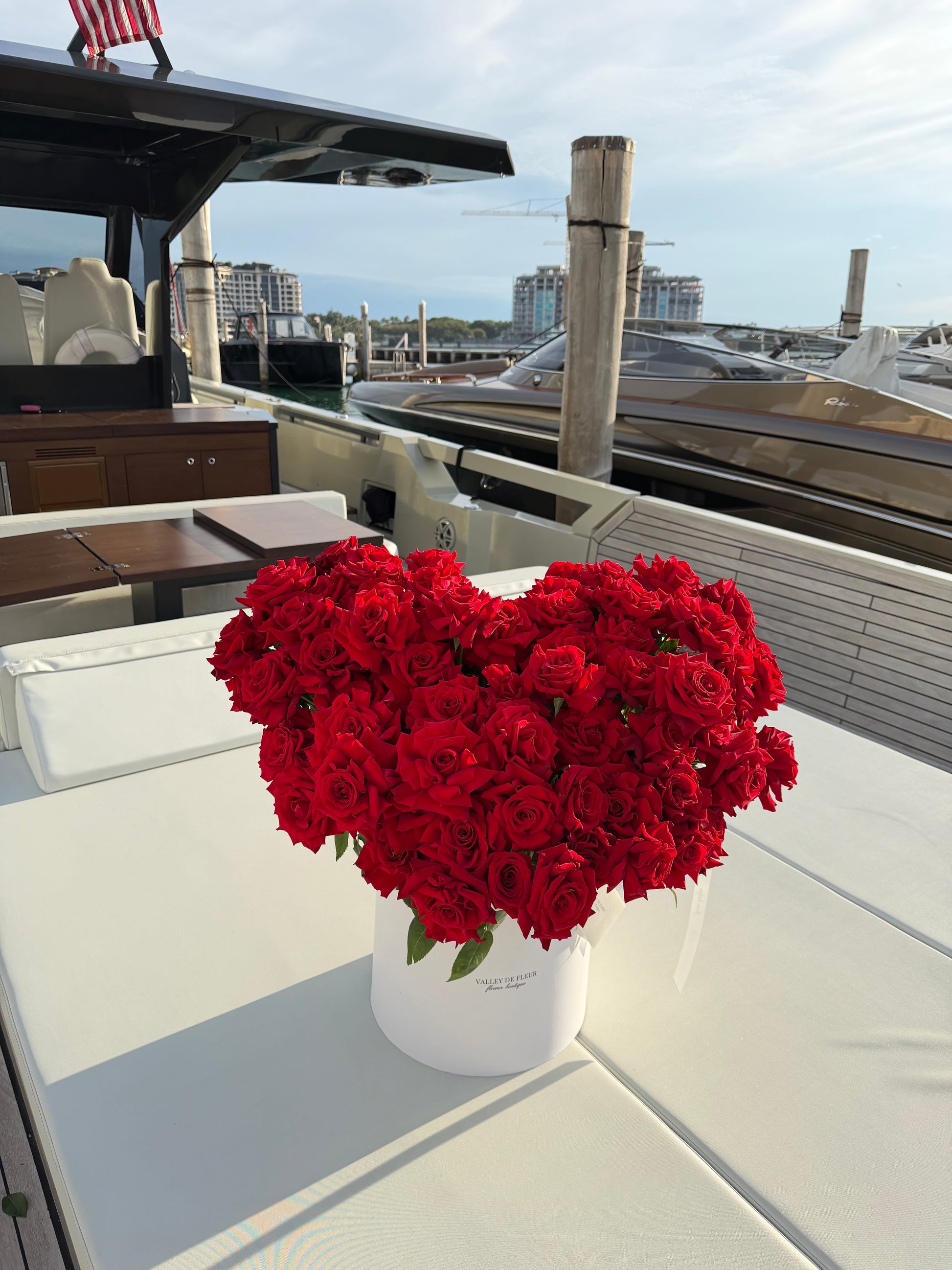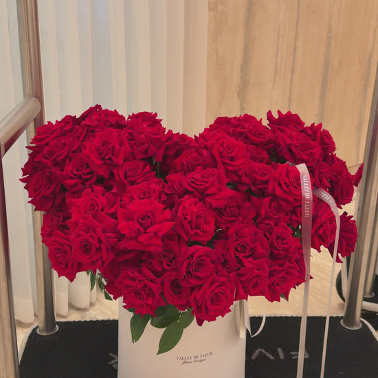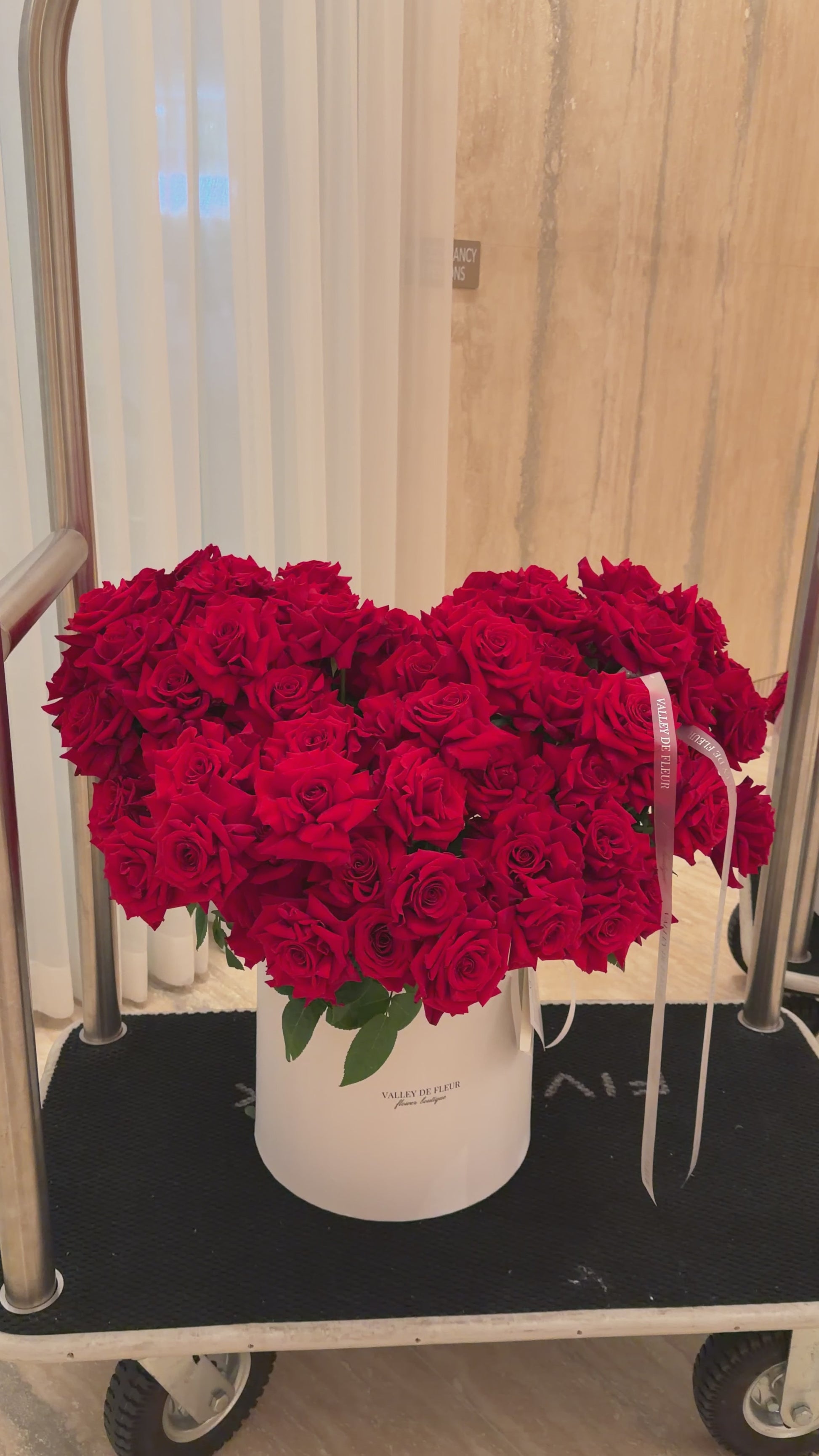 Роскошный круглый букет в коробке, состоящий из великолепных красных французских роз, отобранных вручную за их насыщенность, глубину цвета и безупречные лепестки. Созданный для выражения страсти, элегантности и вечной романтики, этот эффектный букет идеально подойдет для Дня святого Валентина, годовщин или незабываемых моментов.